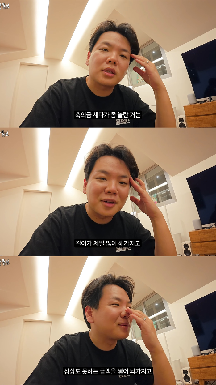 곽튜브는 결혼식이 끝난 뒤 카메라 앞에서 “진짜 힘들었지만, 너무 감사하다. 결혼식을 잘 치러 다행이다”며 “축의금을 세다가 놀랐다. 가장 많이 해준 사람이 길이(장현길)였다. 상상도 못 한 금액이었다”고 솔직하게 털어놨다.