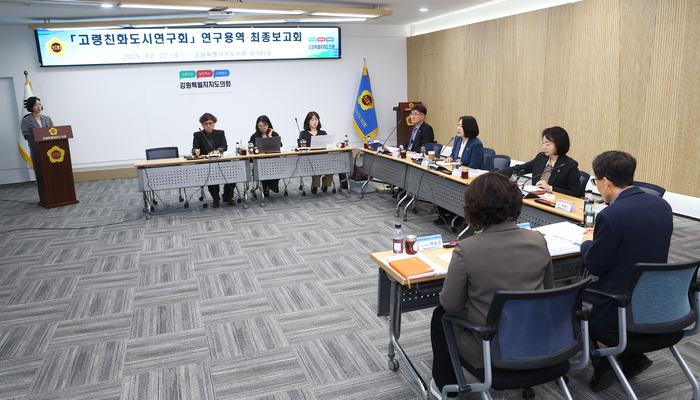 보고회에는 고령친화도시연구회 소속 의원과 용역 수행기관인 ㈜꾸림 임혜순 대표, 강원특별자치도 복지보건국 노인복지과 관계자 등이 참석했다.