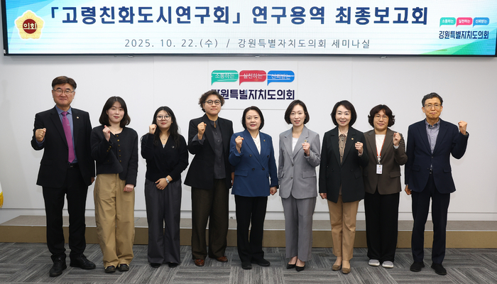 [스포츠서울ㅣ춘천=김기원기자]강원특별자치도의회 「고령친화도시연구회(회장: 박윤미 의원, 간사: 이지영 의원)」는 10월 22일(수) 도의회 세미나실에서 「고령화시대 고령친화산업 활성화 방안 연구」의 최종보고회를 개최했다.