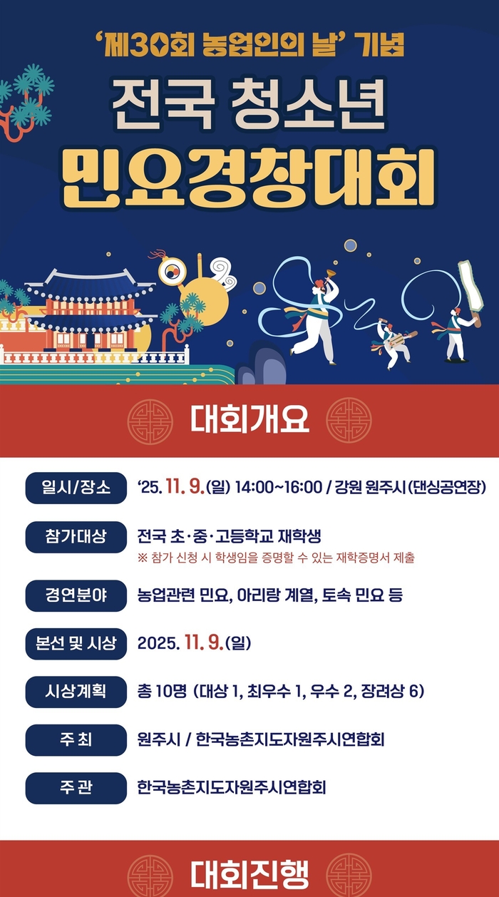 ‘농업의 뿌리, 100년의 미래를 향하다’를 주제로 열리는 올해 행사에서는 농업의 가치를 되새기고 농업인의 창의적 역량과 시민의 참여를 확대하기 위한 다양한 경연대회가 운영될 예정이다.