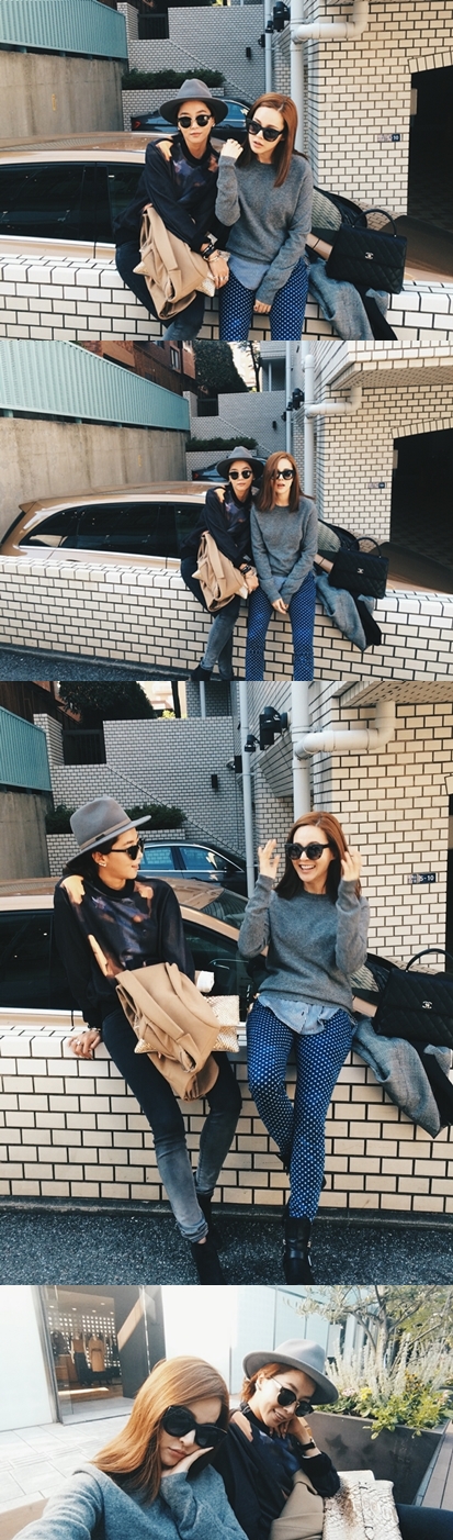 공개된 사진 속에는 화보 촬영을 연상케 하는 오윤아와의 사진도 게재돼 눈길을 끌었다. 두 사람은 나란히 선글라스를 끼고 남다른 패션 감각을 뽐내 깊은 인상을 남겼다.