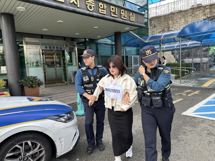 훈련은 ‘본인서명사실확인서 발급 과정 중 발생한 난폭 행위’를 가정한 실전형 시나리오를 기반으로 △상급자의 적극 개입 및 진정 유도 △사전 고지 후 녹음·녹화 △경찰서 연계 비상벨 작동 및 청원경찰 호출 △피해 공무원 보호와 방문 민원인 대피 △위법행위 민원인 제압 및 출동 경찰 인계 등 실제상황에 준하는 대응 절차를 점검했다.
