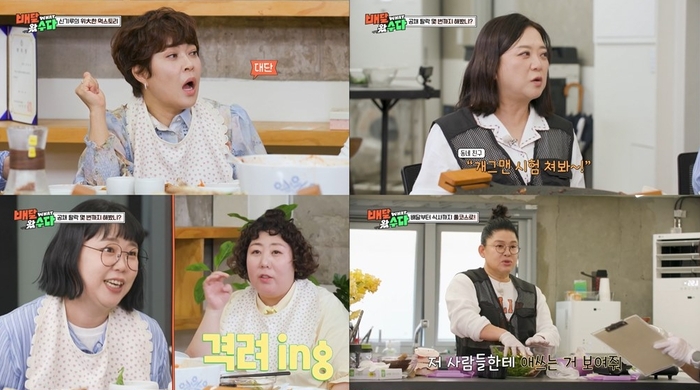 준비된 음식과 함께 개그우먼들의 진솔한 ‘직업 토크’도 이어졌다. 조혜련과 이영자는 같은 기수로 개그맨 시험을 봤지만 나란히 떨어졌던 일화를 전했다. 이영자는 “공채는 떨어지고 특채로 붙었다. 8번 떨어지고 붙은 케이스”라며 “그땐 이도 저도 아닌 캐릭터였다”라고 회상했다. 신기루 역시 “다섯 번 떨어지고 방송을 먼저 하다 특채로 뽑혔다”라고 털어놓았고, 김민경은 “서너 번 떨어지고 KBS 공채로 붙었다”라고 밝혔다.