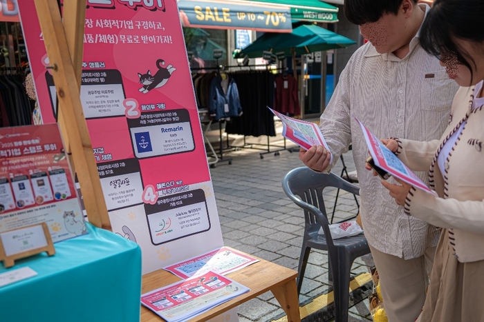 이번 행사는 한국사회적기업진흥원(강원), 원주시사회적경제지원센터와 공동으로 진행됐다. 방문객들은 미로시장 내 사회적 기업 4개소를 방문해 스탬프를 인증하면 소정의 기념품을 받고, 업사이클링 소품 만들기 등 사회적경제의 가치를 체험할 수 있는 다양한 프로그램도 마련됐다.