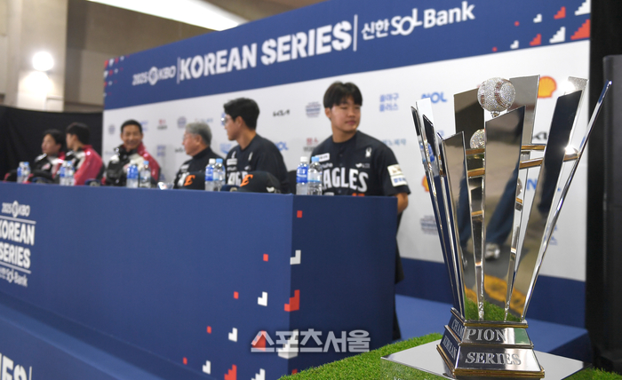 LG 염경엽 감독과 한화 김경문 감독외 참가 선수들이 25일 서울 잠실구장에서 열린 2025 KBO 포스트시즌 한국시리즈 미디어데이 행사를 기다리고 있다.