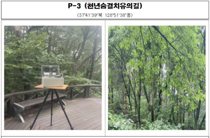 [스포츠서울ㅣ춘천=김기원기자]강원특별자치도 보건환경연구원(원장 신인철)은 2025년 6월부터 8월까지 강릉시 구정면 소재 「강릉솔향수목원」을 대상으로 식물들이 분비하는 항균물질로 알려져 있는 피톤치드(phytoncide) 농도를 조사한 결과를 발표했다.