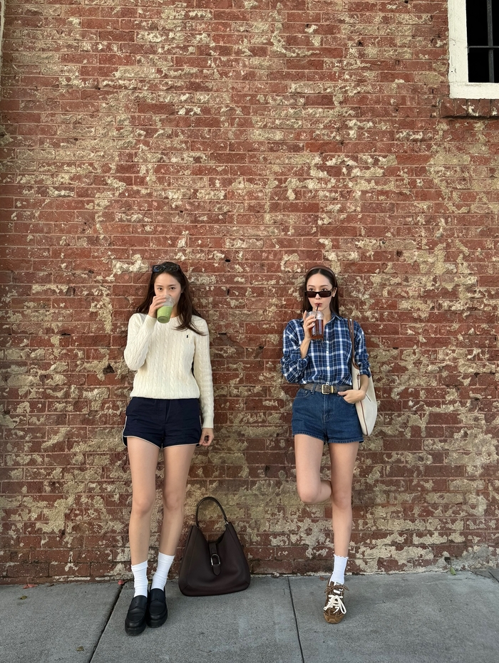 따사로운 가을 분위기가 풍기는 제시카, 크리스탈 자매의 시밀러룩이 인상적이다. 평소 두 사람은 남다른 패션 감각으로도 유명하다.