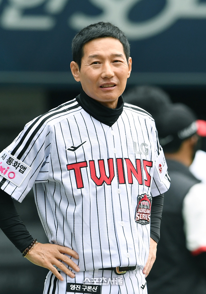 LG 염경엽 감독이 26일 잠실구장에서 열리는 2025 KBO리그 한화와의 한국시리즈 1차전에 앞서 박용택 해설위원과 이야기를 나누고 있다. 2025. 10. 26.