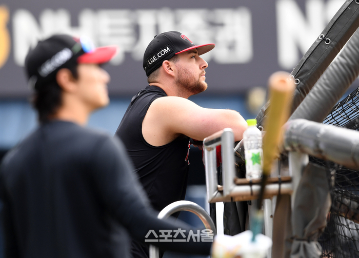 LG 오스틴이 26일 잠실구장에서 열리는 2025 KBO리그 한화와의 한국시리즈 1차전에 앞서 동료들의 훈련을 지켜보고 있다. 2025. 10. 26.