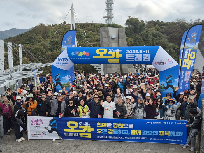[스포츠서울ㅣ춘천=김기원기자]강원관광재단(대표이사 최성현)은 10월 25일(토) 철원 한탄강 은하수교 일원에서 약 700명이 참여한 가운데 ‘친절한 강원으로 오면 감동하고, 함께 걸으면 행복해요’라는 슬로건으로 ‘오감트레킹’ 행사를 개최했다. 이번 행사는 강원일보 및 강원일보 CEO 아카데미 총원우회와 협력해 성공적으로 진행됐다.