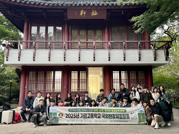 [스포츠서울ㅣ김기원기자]인제군 기린고등학교(교장 박준희)는 10월 21일(화)부터 24일(금)까지 본교 1학년 학생 22명을 대상으로 3박 4일간 중국 상해·남경·항주 일원에서 ‘항일 역사탐방 국외현장체험학습’을 운영했다.