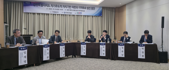 [스포츠서울ㅣ춘천=김기원기자]강원특별자치도의회 박대현 의원(국민의힘, 화천)은 24일 춘천 오라호텔베어스에서 열린 “2025 강원특별자치도 자치분권 포럼”의 “강원특별자치도 자기주도적 자치기반 마련과 지역특화 전략” 주제에 대한 토론자로 참석했다.
