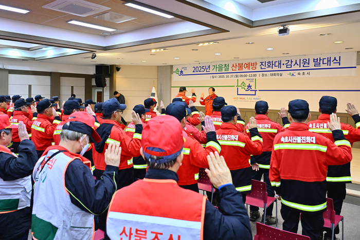 이병선 속초시장은 “이번 발대식은 본격적인 가을철 산불조심기간을 앞두고 산불 예방과 초기 대응의 중요성을 재확인하는 자리”라며 “가을철 산행이 늘어나는 만큼, 시민과 관광객께서도 인화물질이나 화기 반입을 삼가고 취사 행위를 하지 않는 등 산불 예방에 적극 동참해 주시길 바란다”고 말했다.
