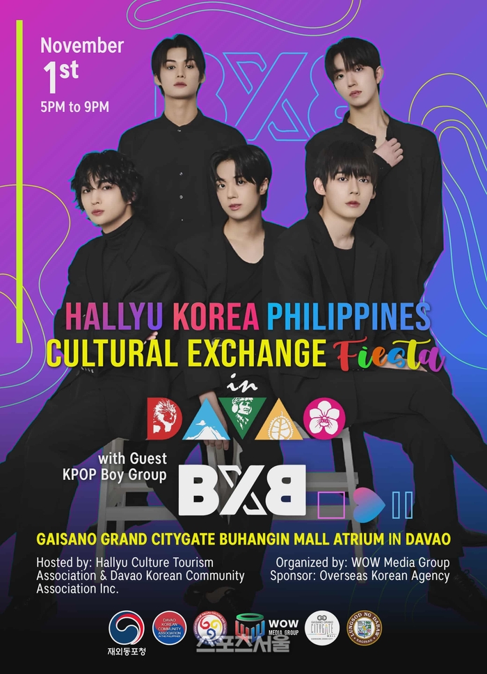 한류 문화를 전 세계에 전파하는데 최선을 다하고 있는 ‘한류문화관광총연합회’와 ‘다바오 한인회’가 주최하고, ‘재외동포청’에서 후원하는 ‘한류 한필문화교류축제 인 다바오’가 ‘가이사노 그랜드 시티게이트몰 BUHANGIN’에서 개최되며, 다바오에서 처음으로 ‘보이그룹 BXB’가 케이팝 콘서트를 연다.