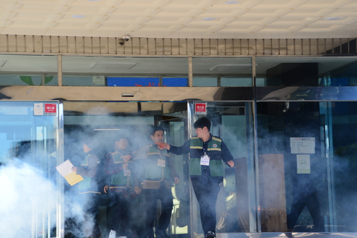 이번 훈련은 군청 및 군의회 직원 등 300여 명이 참여한 가운데, 실제 화재 발생 상황을 가정해 화재 고지, 직원 대피, 초기 진압, 긴급구호 등 단계별 대응 절차를 중점적으로 진행했다.