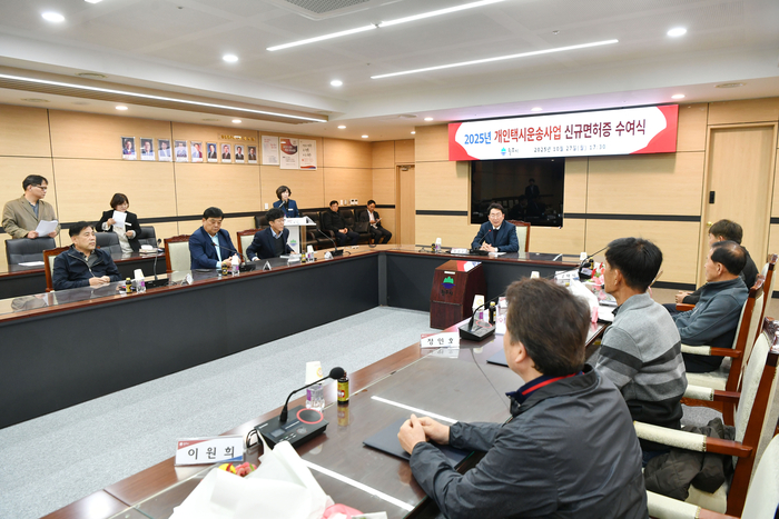 [스포츠서울ㅣ원주=김기원기자]원주시는 2025년 개인택시운송사업 신규 면허 대상자 4명을 확정· 발표하고, 이달 27일 시청 7층 회의실에서 개인택시 운송사업 신규 면허증 수여식을 개최했다.