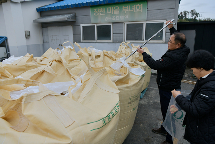 올해 매입 계획 물량은 136.8톤으로, 톤백벼 171포(800kg) 기준이다. 매입 일정은 10월 28일과 29일 이틀간 진행한다. 매입 품종은 오대와 해들 2종이며, 4개 동 7개 마을별 일정에 따라 순차적으로 추진한다.
