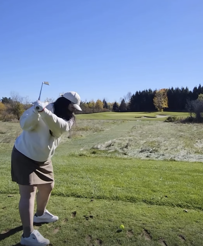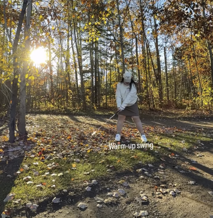 이국주는 스윙하는 연습과 함께 “Canada golf vibes. 골프와 이별한 지 넘나 오래 됐지만 여기서 안 칠 수 없지”라는 글을 남겼다. 다른 영상에서는 낙엽이 우거진 숲 속에서 스윙 연습을 하며 여유를 즐기는 모습이다.