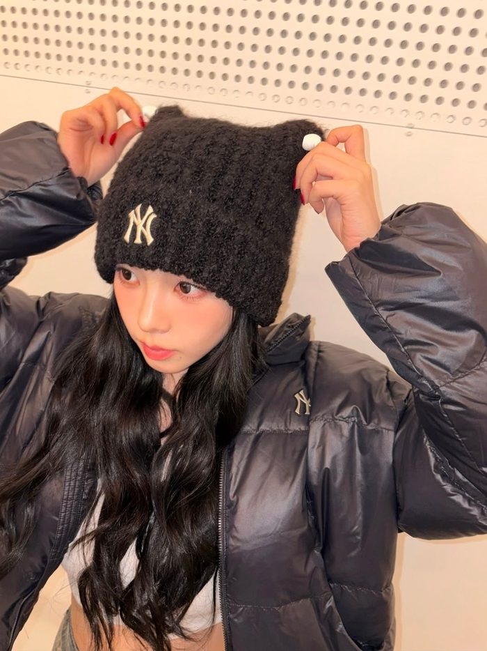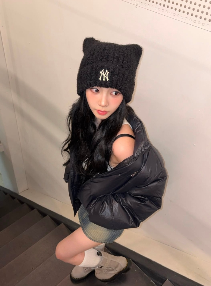 사진 속 카리나는 자신이 앰배서더로 활동 중인 MLB의 겨울 컬렉션 제품을 착용한 모습이다. 검은색의 니트 비니와 오버핏 패딩, 워싱 데님 미니스커트로 스타일리시한 캐주얼룩을 완성했다.