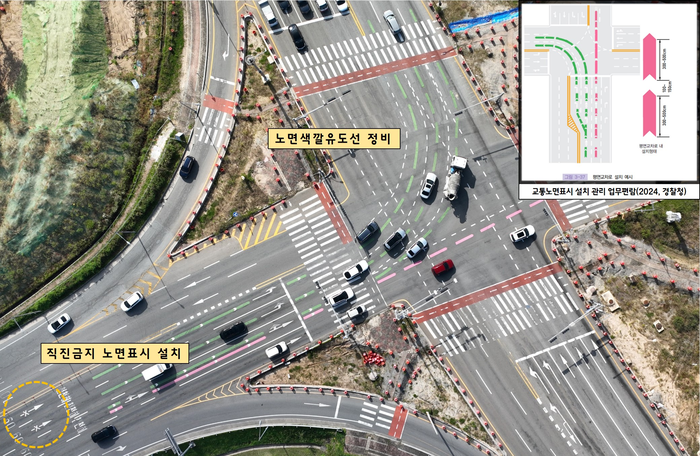 점검 결과 ▲회전교차로에는 ‘회전차량 우선’ 보조표지 설치로 회전차량의 원활한 통행을 유도하고, ▲교차로 좌·우회전전용차로에는 ‘직진금지’ 노면표시와 노면색깔유도선을 추가하는 등 총 279건의 개선대책을 마련했다. 해당 내용은 각 도로관리청에서 예산이 확보되는 대로 반영·정비될 예정이다.