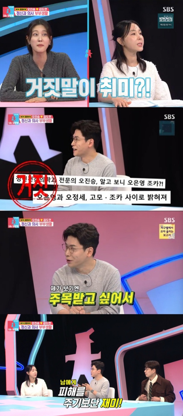 지난 27일 SBS ‘동상이몽2’에서 그는 오은영을 고모, 배우 오정세를 사촌형이라 소개했고, 아내 김도연이 즉시 “다 거짓말”이라 정정하면서 스튜디오는 물론 시청자 여론까지 얼어붙었다.