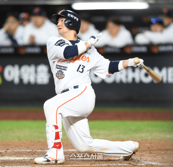 선두타자 채은성이 중전안타를 때려낸 2회말. 이진영은 땅볼로 출루했지만, 선행주자는 아웃됐다. 1사 1루에서 하주석이 좌전안타를 더하며 득점의 물꼬를 텄고, 최재훈 역시 곧바로 안타를 친 덕분에 스코어 1-0이다. sshong@sportsseoul.com
