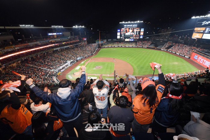 29일 대전 한화생명볼파크에서 열린 2025 KBO리그 LG와 한화의 한국시리즈 3차전에서 한화 팬들이 열띤 응원을 펼치고 있다. 2025. 10. 29.