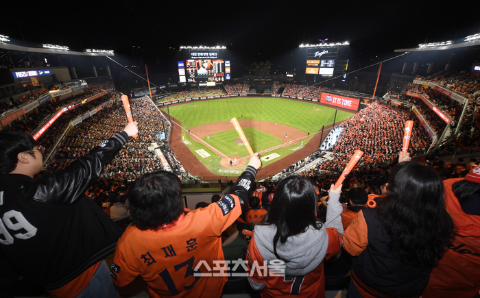 29일 대전 한화생명볼파크에서 열린 2025 KBO리그 LG와 한화의 한국시리즈 3차전에서 한화 팬들이 열띤 응원을 펼치고 있다. 2025. 10. 29.