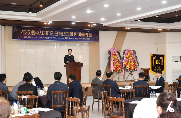 원강수 원주시장은 축사를 통해 “2025년은 특히 미국과의 관세 협상 등으로 우리 기업인들에게 매우 혹독한 한 해였다”며 “그럼에도 불구하고 지역 경제 활성화를 위해 최일선에서 힘써주신 기업인들께 깊은 감사의 마음을 전한다”라고 말했다.