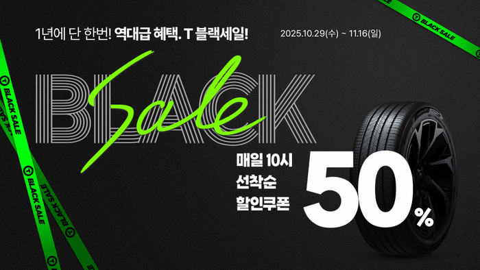 한국타이어는 30일 타이어 판매 프랜차이즈 ‘티스테이션’의 온라인 쇼핑몰에서 매일 오전 10시까지 선착순 5명에게 타이어 50% 할인 쿠폰을 증정한다고 밝혔다. 쿠폰은 계정당 1회만 당첨될 수 있으며 다음 달 30일까지 사용할 수 있다.