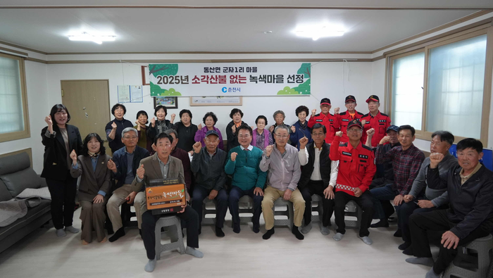 춘천시는 지난해에 이어 7년 연속 우수마을을 배출하며 산불예방 모범 지자체로 자리매김했다. 이와 관련 30일 육동한 춘천시장은 군자1리 우수마을 선정 현판식을 갖고 시상금 강원상품권 100만 원을 전달했다.