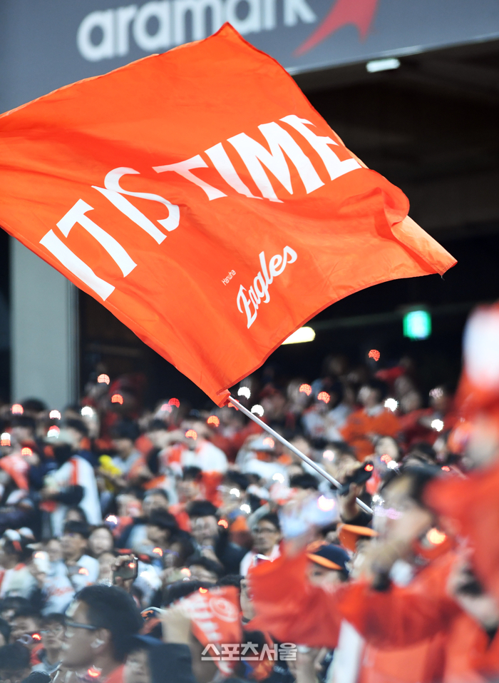 30일 대전 한화생명볼파크에서 열린 2025 KBO리그 LG와 한화의 한국시리즈 4차전에서 한화 팬들이 열띤 응원을 펼치고 있다. 2025. 10. 30.