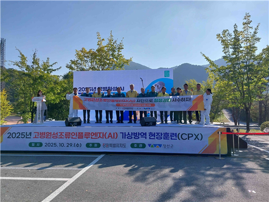 [스포츠서울ㅣ춘천=김기원기자]강원특별자치도(도지사 김진태)는 10월 29일(수) 오후 2시, 정선군 종합경기장에서 정선군과 합동으로 「2025년 조류인플루엔자(AI) 가상방역 현장훈련」을 실시했다.
