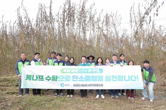 [스포츠서울ㅣ춘천=김기원기자]춘천시(시장 육동한)와 강원도시농업사회적협동조합(대표 박중구)은 31일 사농동 마장천 생태하천 복원사업 부지에서 지난 5월 파종한 케나프(양삼)를 수확했다.