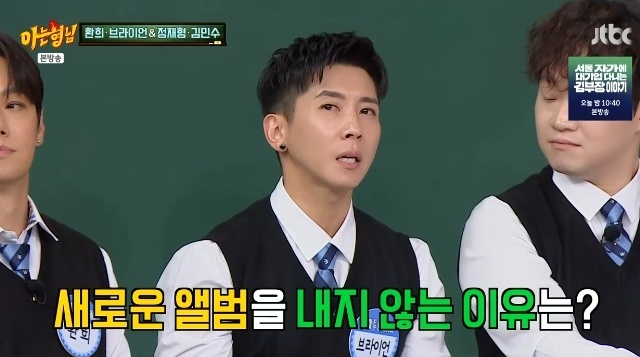 브라이언과 환희의 동반 출연으로 형님들이 기대에 찬 목소리로 “음반이 나오냐”고 묻자 브라이언은 “우리가 음반을 내는 건 아니다”라고 말했다. 이어 환희가 “간간이 계속 활동은 같이 하고 있지만 앨범은 내지 않았다”고 덧붙였다.