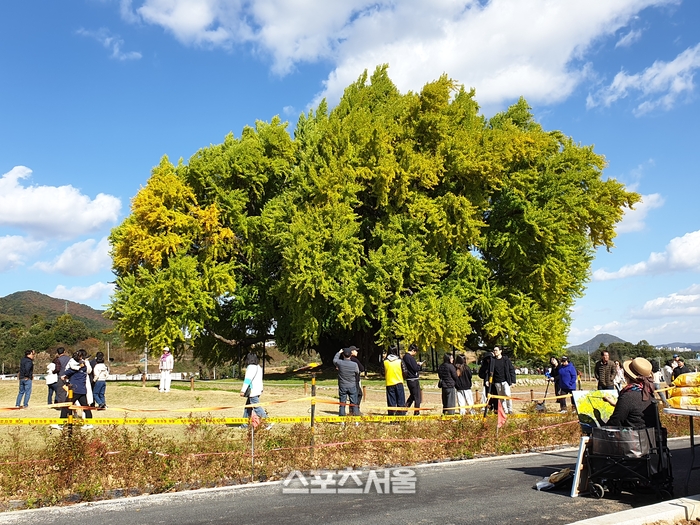이번 축제에는 전국 각지에서 수령 1,318년으로 추정되는 국내 최고령 천연기념물 제167호 반계리 은행나무를 보러 온 관람객들로 지정 주차장은 물론 인근의 빈터가 자동차로 꽉 들어찼다.