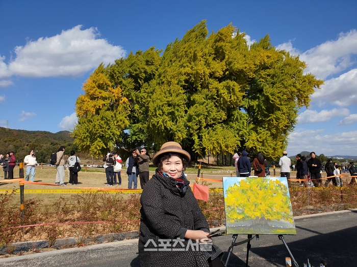 SNS에서 접한 반계리은행나무, 350km 달려와 화폭에 담아
