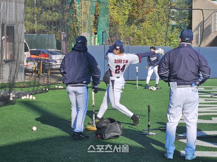 송성문 타격훈련 때는 “명불허전이네”라고 감탄하기도 했다. 키움은 9월30일 마지막 경기를 치렀다. 한 달 넘는 시간이 흘렀다. 그래도 경쾌하게 배트를 돌렸다.
