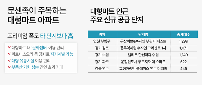 [스포츠서울 | 김미영 기자] 대형할인점 인근 아파트 단지의 선호도가 높은 가운데 경기 김포, 수원, 파주 등지에서 마트 프리미엄을 누릴 대단지들이 분양을 앞두고 있다.