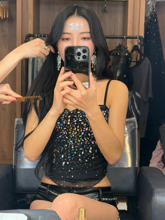 또 다른 사진에서는 은빛 왕관과 화려한 장식이 돋보이는 블랙 롱 드레스로 우아한 여신 비주얼을 선보였다. 레이싱 수트 콘셉트 의상에 비즈를 엮은 독특한 헤어스타일을 더하는 등 다채로운 매력을 뽐냈다.