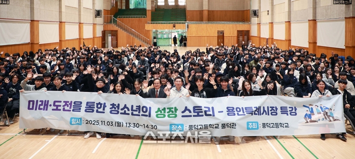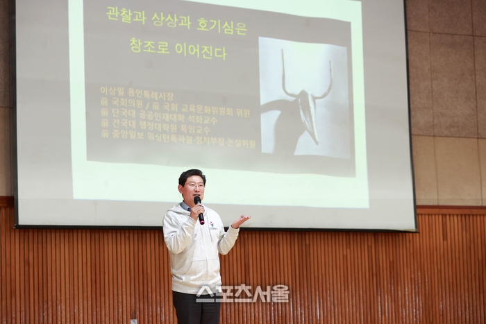 〔스포츠서울│용인=좌승훈기자〕이상일 용인특례시장은 3일 수지구 풍덕천동에 있는 풍덕고등학교에서 학생들을 대상으로 한 ‘관찰과 상상과 호기심은 창조로 이어진다’는 주제의 특강을 통해 “유심히 관찰하고, 상상하면서 고정관념을 깨고 호기심으로 도전하고 시도하면서 여러분의 무궁무진한 꿈을 펼쳐보길 바란다” 강조했다.