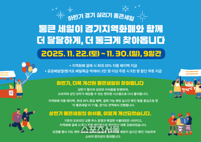 상반기 통큰 세일은 지난 6월 21일부터 29일까지 9일간 도내 396개 상권이 참여한 대규모 소비 촉진 행사다. 소비 인증 페이백, 경기도 공공배달애플리케이션 할인, 상인회 자율 행사 등 다양한 프로그램이 함께 운영됐다.