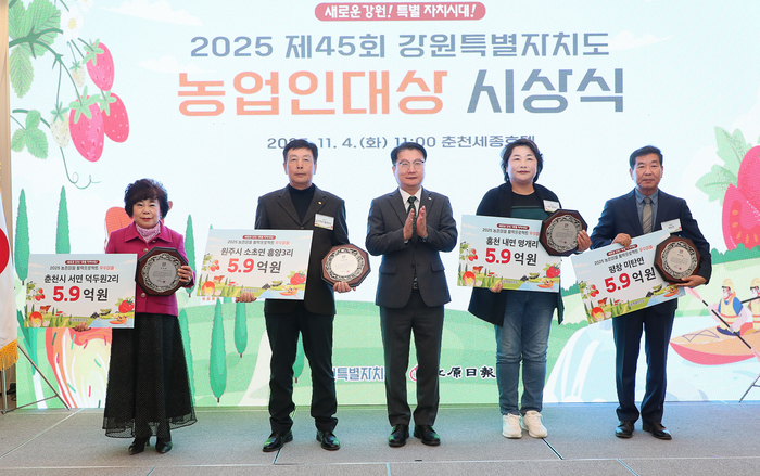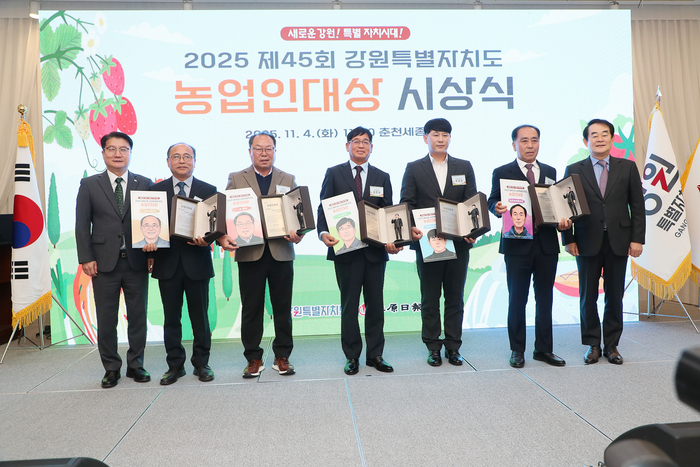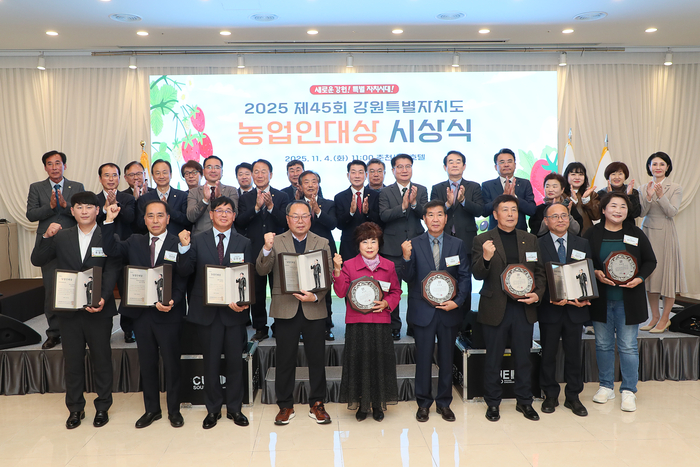 [스포츠서울ㅣ춘천=김기원기자]강원특별자치도(도지사 김진태)는 강원일보사와 공동으로 11월 4일(화) 오전 11시, 춘천 세종호텔에서 「2025 제45회 강원특별자치도 농업인대상 시상식」을 개최했다.