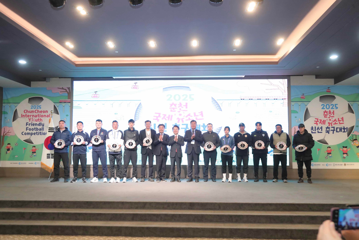 [스포츠서울ㅣ춘천=김기원기자]2025 춘천 국제 유소년 친선 축구대회 개회식이 지난 4일 오후 스카이컨벤션웨딩홀에서 환영만찬과 함께 열렸다. 춘천시는 4일부터 7일까지 나흘간 송암스포츠타운 에어돔에서 ‘2025 춘천 국제 유소년 친선 축구대회’를 개최한다.