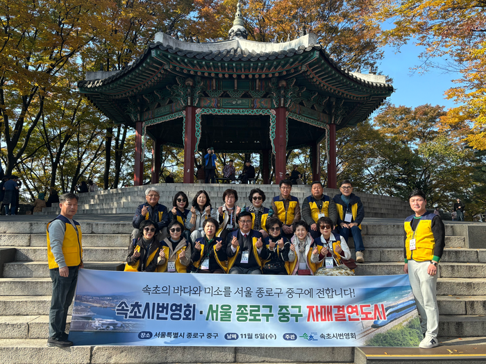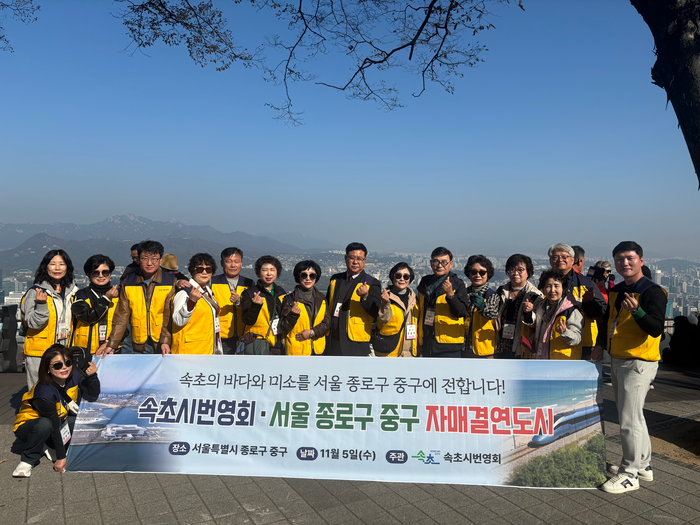 [스포츠서울ㅣ김기원기자]속초시번영회(회장 김덕용)는 지난 5일, 속초시의 자매도시인 서울특별시 중구(남산 서울타워, 덕수궁 돌담길)와 종로구(혜화 대학로) 일원에서 회원 20여 명이 참석한 가운데 속초시 지역경제 활성화와 관광객 유치를 위한 거리 캠페인을 전개했다.