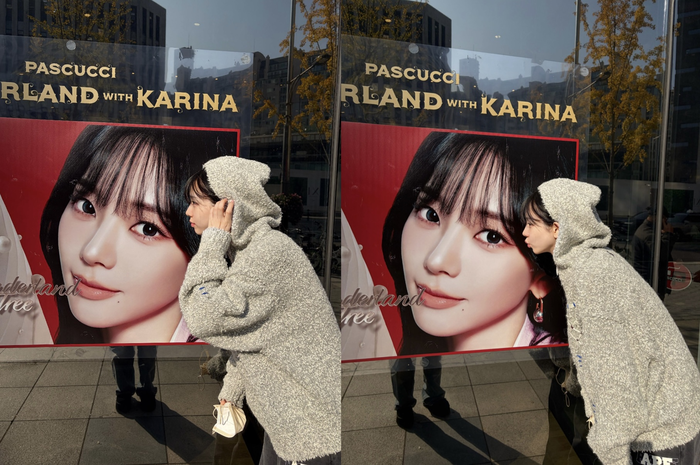 5일, 카리나는 팬 소통 플랫폼에 매장 내 자신의 광고 포스터 앞에서 찍은 사진을 올렸다. 사진 속 그는 화장기 없는 수수한 얼굴로 포스터 속 자신의 볼에 살짝 손을 대고 귀엽게 포즈를 취하며 청순한 매력을 뽐냈다.