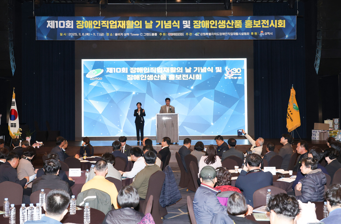 [스포츠서울ㅣ김기원기자] 강원특별자치도장애인직업재활시설협회는 6일 삼척 쏠비치에서 제10회 장애인직업재활의 날 기념식 및 장애인생산품 홍보전시회 개회식을 개최했다. 행사는 7일까지 이틀간 열린다.