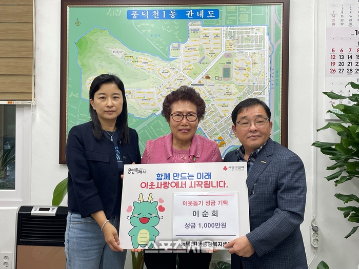 〔스포츠서울│용인=좌승훈기자〕경기 용인시는 올해도 어김없이 이순희 씨(77세)가 풍덕천1동 행정복지센터를 찾아 한 해 동안 모은 급여 전액인 1000만원을 어려운 이웃을 위해 써달라며 기탁했다고 7일 밝혔다.