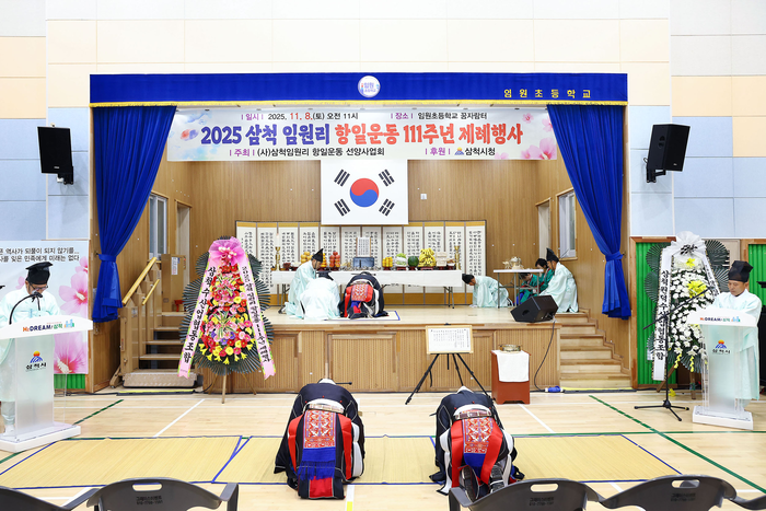 [스포츠서울ㅣ김기원기자](사)삼척임원리 항일운동 선양사업회 주최로 2025 삼척 임원리 항일운동 111주년 제례행사 및 기념식이 8일 임원초등학교 체육관에서 열렸다.