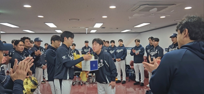 KBO 관계자는 “대표팀 선수단은 오늘 아침 훈련 시작에 앞서 락커룸에서 류지현 감독의 대표팀 첫 승리를 축하하는 깜짝 파티를 열었다. 선수단은 류 감독에게 꽃다발과 케이크를 전달했다”고 말했다.